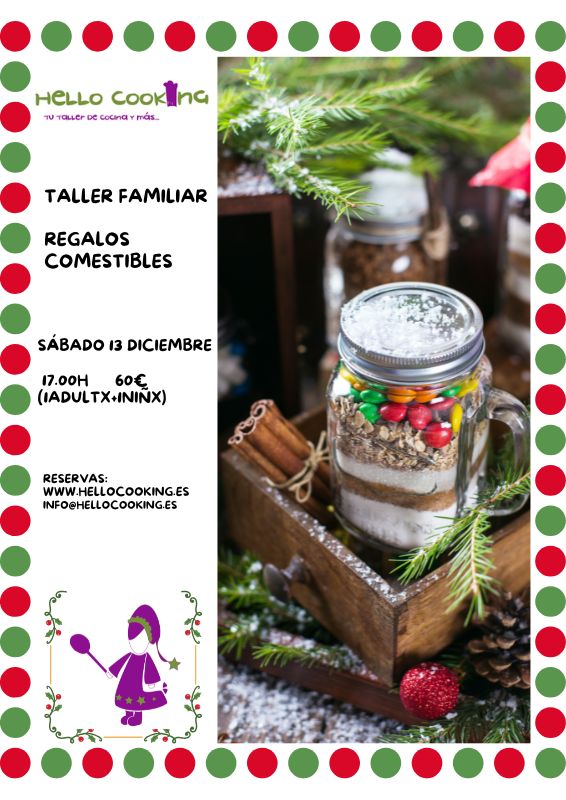 En nuestro taller familiar de regalos comestibles os enseñaremos recetas perfectas para que sean un regalo inolvidable y hecho con mucho cariño, juntos prepararéis una cajita con cositas deliciosas, el regalo perfecto!Más info y reservaDomingo 14 Diciembre 2025