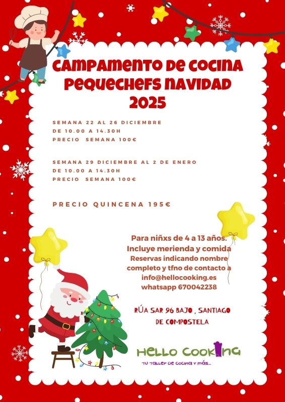 En nuestro ya clásico Campamento de Cocina Infantil de Navidad, los niños aprenderán a preparar recetas deliciosas, creativas y festivas mientras se divierten, trabajan en equipo y descubren sabores y olores. ¡Diversión y sabor asegurados estas fiestas!Más info y reservaSábado 22 Noviembre 2025